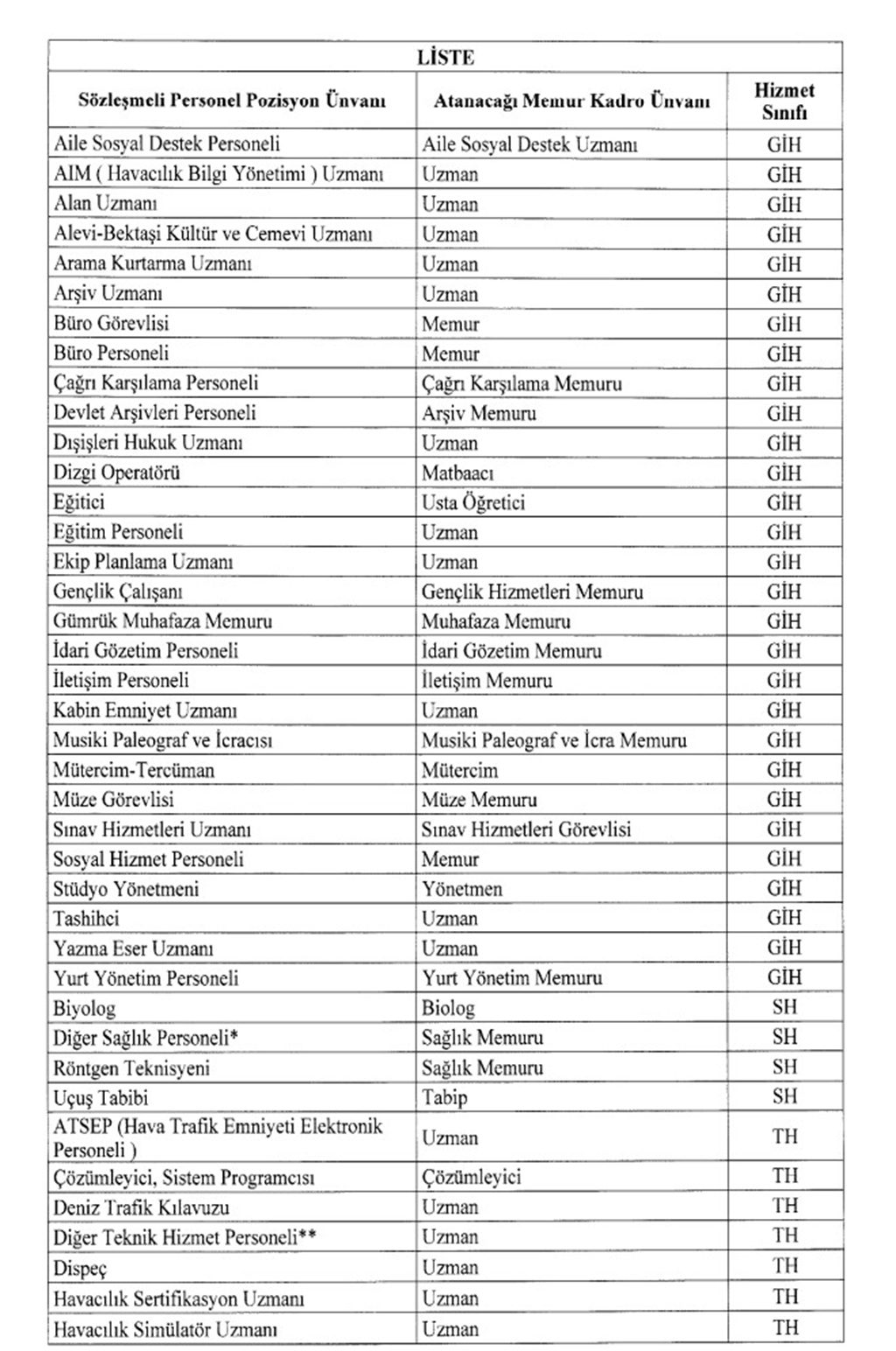 3. 4/B’li Sözleşmeli Personellerin Kadroya Geçişte Atanacakları Memur Kadroları Belli Oldu