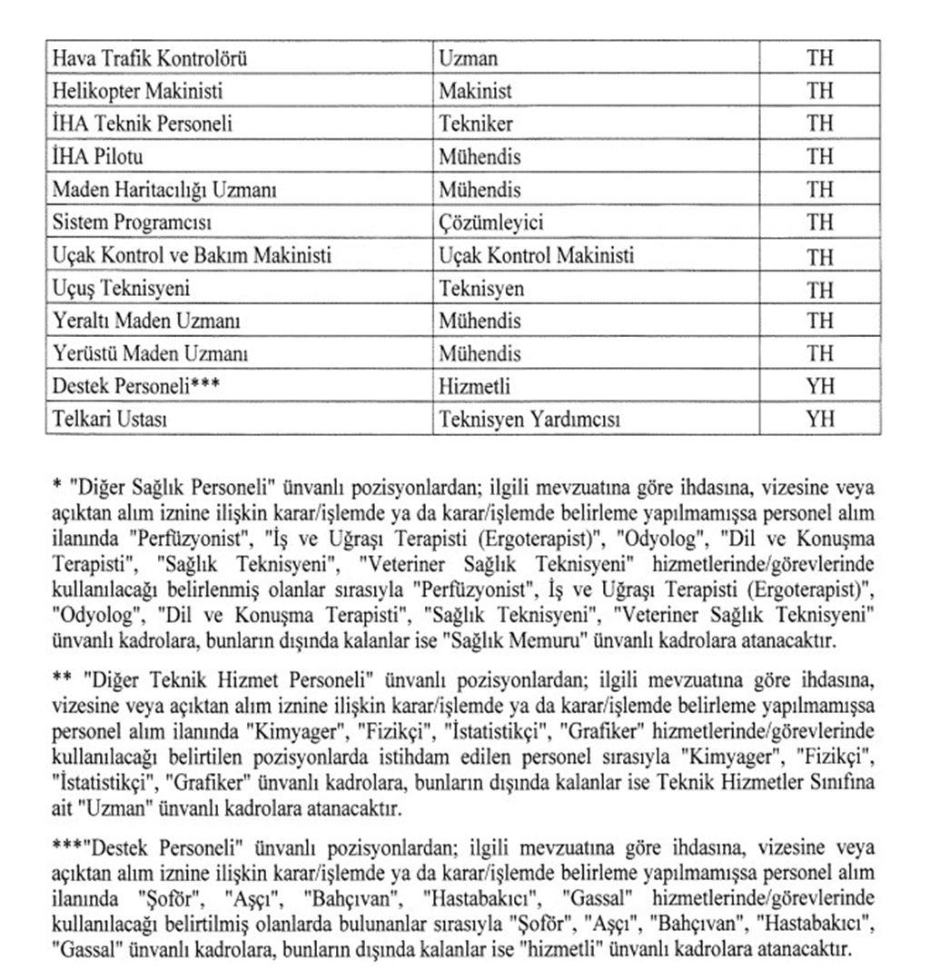 Ancak, sözleşmeli personel olarak çalışan bir kişi; aynı unvana sahip memur kadrosu bulunmaması durumunda; memur kadrosuna atanabilmek için Cumhurbaşkanı Erdoğan tarafından belirlenen kadroları tercih etmek zorundadır.