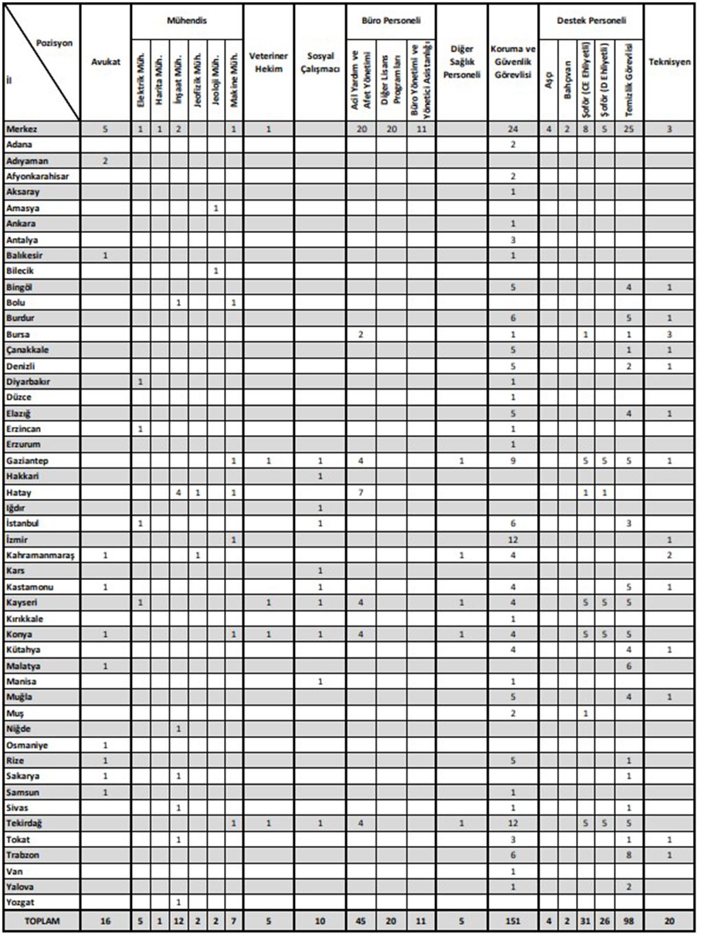 AFAD 473 Personel Alımı Kadro Dağılımı