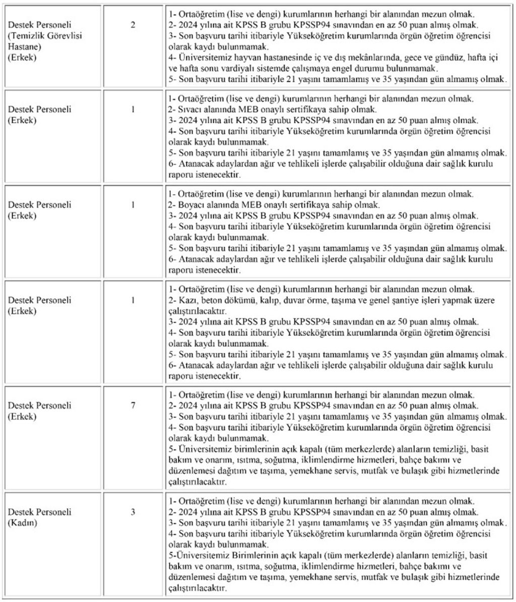 • 10 Destek Personeli alımı. (erkek adaylar başvurabilir)