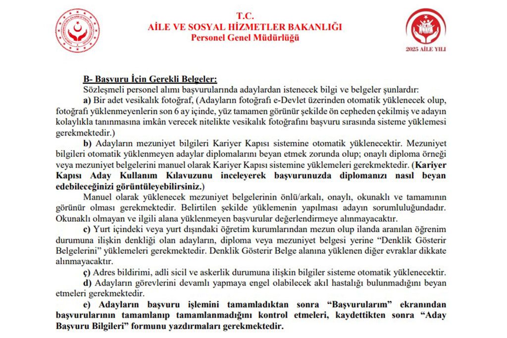Aile Ve Sosyal Hizmetler Bakanlığı 3 Bin Personel Alımı Başvuru Evrakları