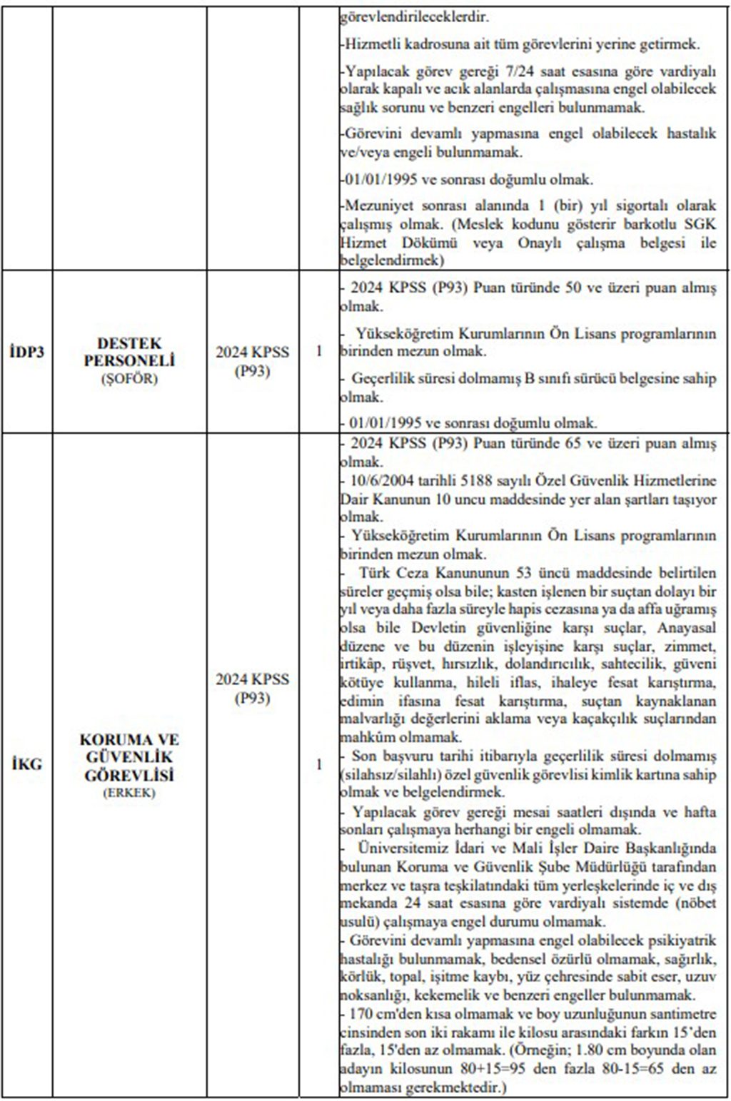 Ön lisans mezunları için, 2024 yılı KPSS (B) grubu P93 puan şartı esas alınacaktır.