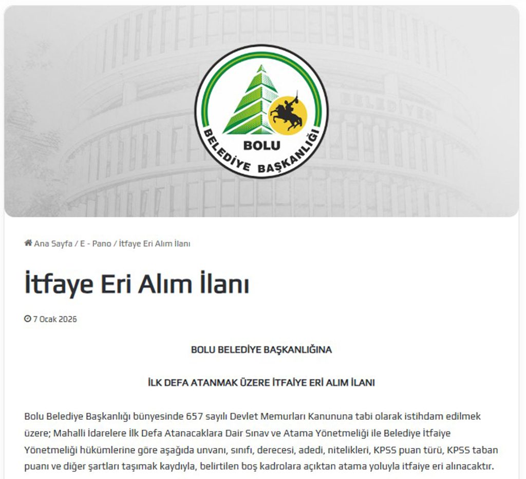 Bolu Belediyesi 8 itfaiye eri alımı kadro dağılımı alt kısımda yer alıyor. Görsel üzerinden inceleme yapabileceksiniz.