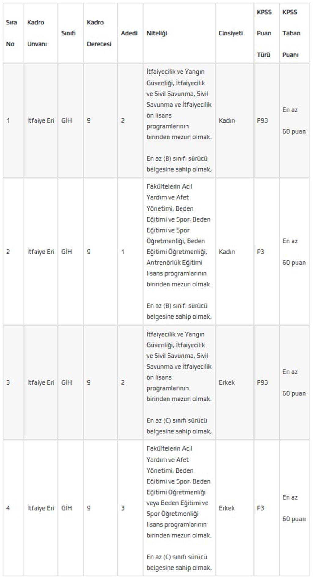 Bolu Belediyesi tarafından açıklanan detaylara göre; itfaiye eri alımı ilanına başvurmak isteyen adaylar; genel başvuru şartları yanı sıra, kadro özel başvuru şartlarına da uygun olmak zorundadır.