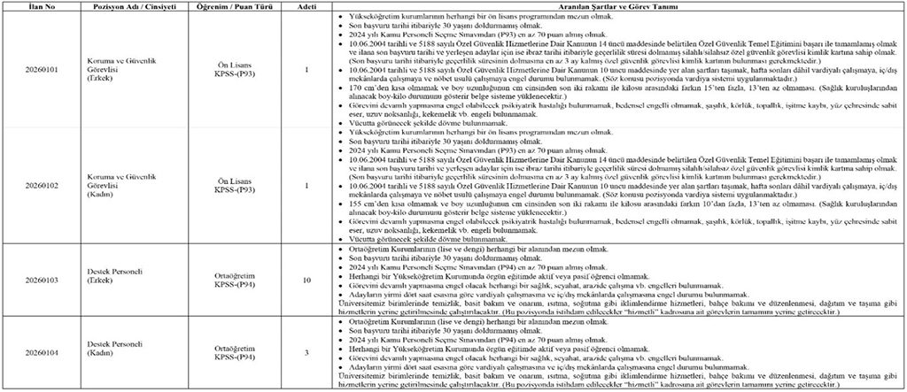 Güvenlik soruşturması ve arşiv araştırması temiz olmak şartı da ilan metninde yer almaktadır.
