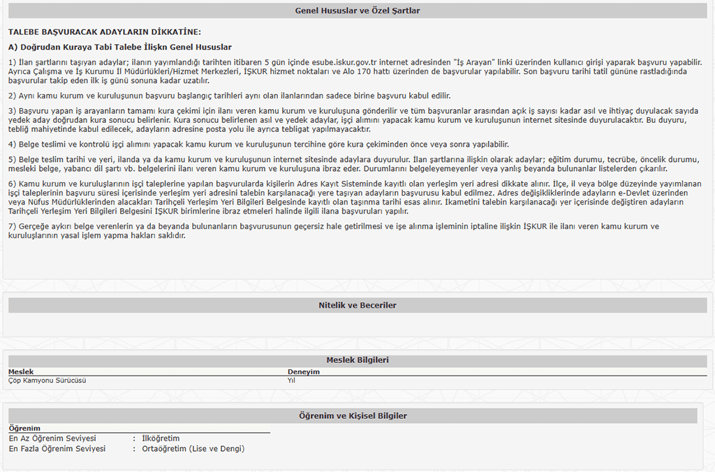 İstihdam kadrosu ise “çöp kamyonu sürücüsü” olarak belirtildi.