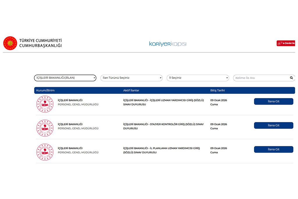 İçişleri Bakanlığı 15 stajyer kontrolör, 40 İçişleri uzman yardımcısı ve 80 il planlama uzman yardımcısı alımı için ilan yayımladı.