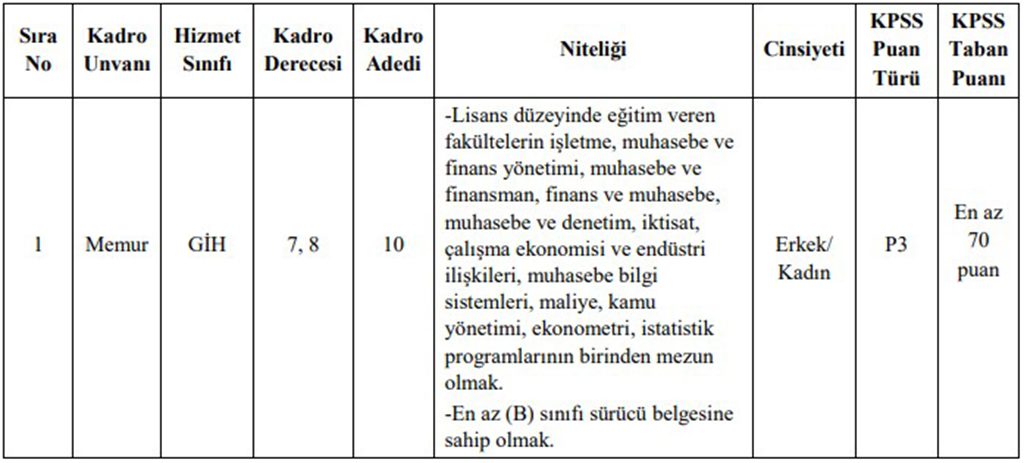 - 2024 KPSS (B Grubu) girmiş olmak ve talep edilen kadro için istenen (en az 70) puana sahip olmak.