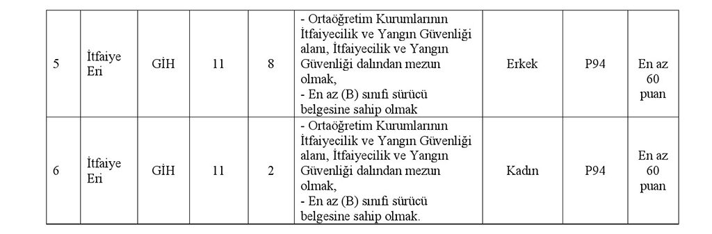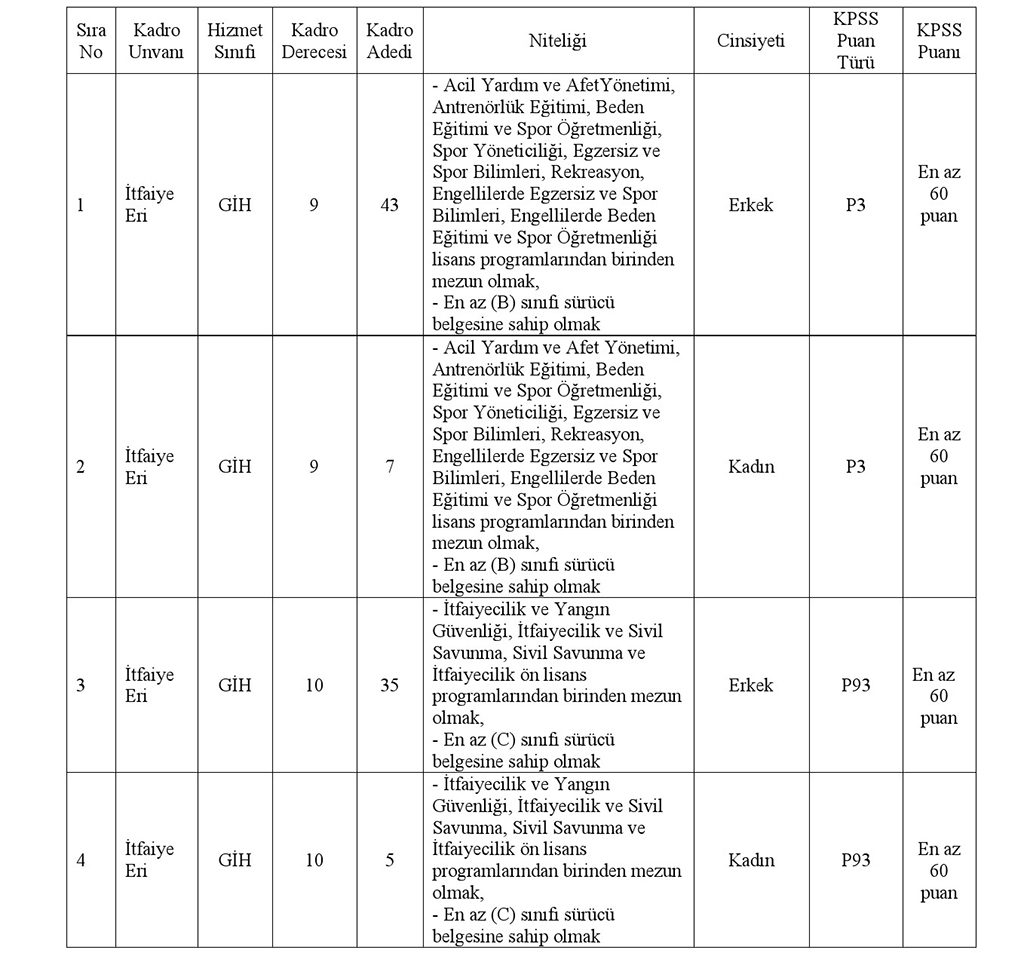 - Yayımlanan itfaiye eri alımı kadroları için talep edilen eğitim mezuniyet şartına uygun olmak.