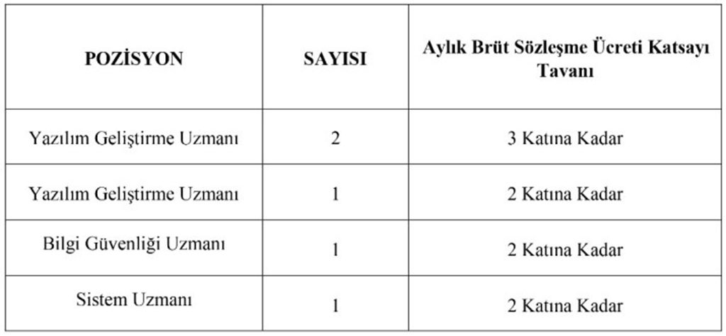 - 2 kişi yazılım geliştirme uzmanı alımı,
