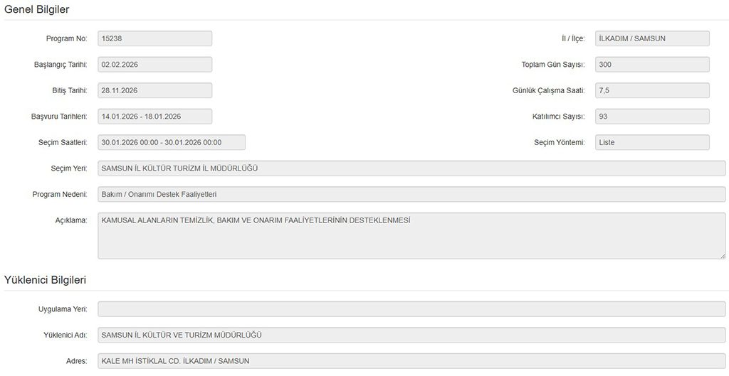İşe alınacak 93 kişi, Samsun İl Kültür Ve Turizm Müdürlüğü bünyesinde; kamusal alanların temizliği, onarımı ve bakımı faaliyetleri kapsamında görev yapacaktır.