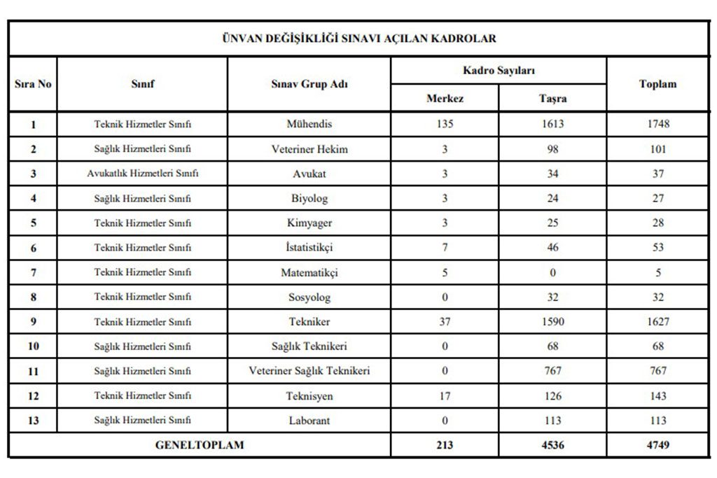 Tarım ve Orman Bakanlığı’nın merkez ve taşra teşkilatında görevli personellerin katılım sağlayabilecekleri ünvan değişikliği sınav duyurusu yayımlandı.