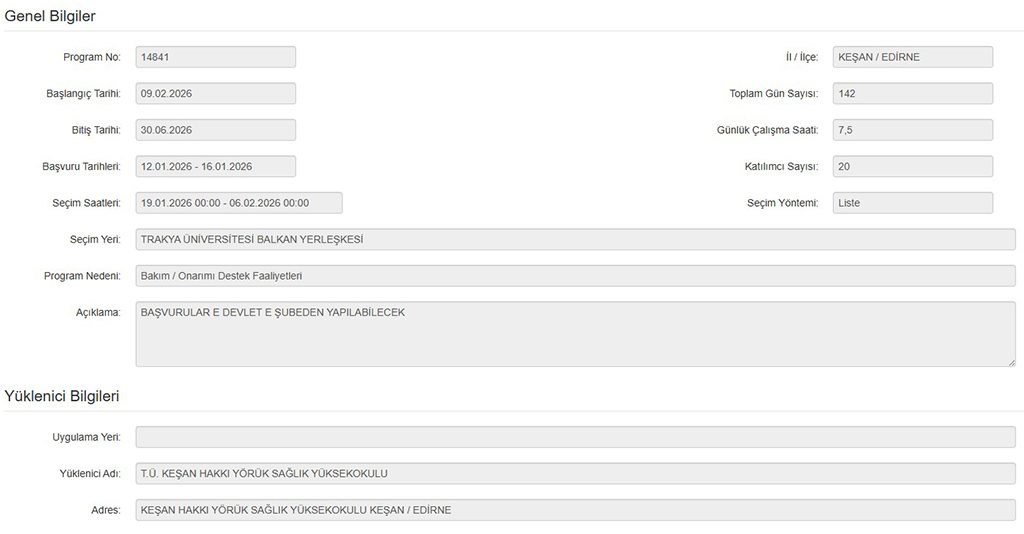 Türkiye İş Kurumu (İŞKUR) İUP kapsamında yeni personel alımları gerçekleştirilmektedir. Son olarak yeni bir İUP personel alımı iş ilanı yayımlanmış ve Trakya Üniversitesi Keşan Hakkı Yörük Sağlık Yüksekokulu İUP ile 20 personel alımı gerçekleştireceğini bildirmiştir. İlanın başvuruları 16 Ocak 2026 tarihinde sona erecektir. Detayları kamuhaberx.com’da paylaştık.