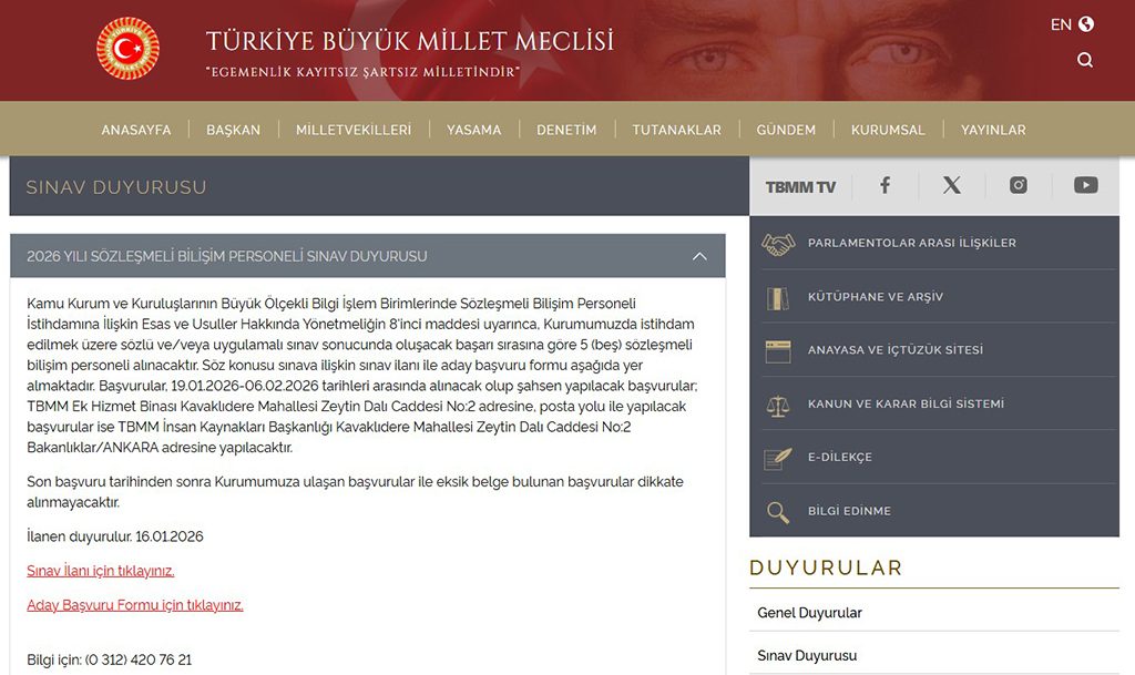 Türkiye Büyük Millet Meclisi resmi internet sitesi üzerinden yayımlanan ilana göre; başvurular 19 Ocak 2026 tarihinde alınmaya başlanmıştır.